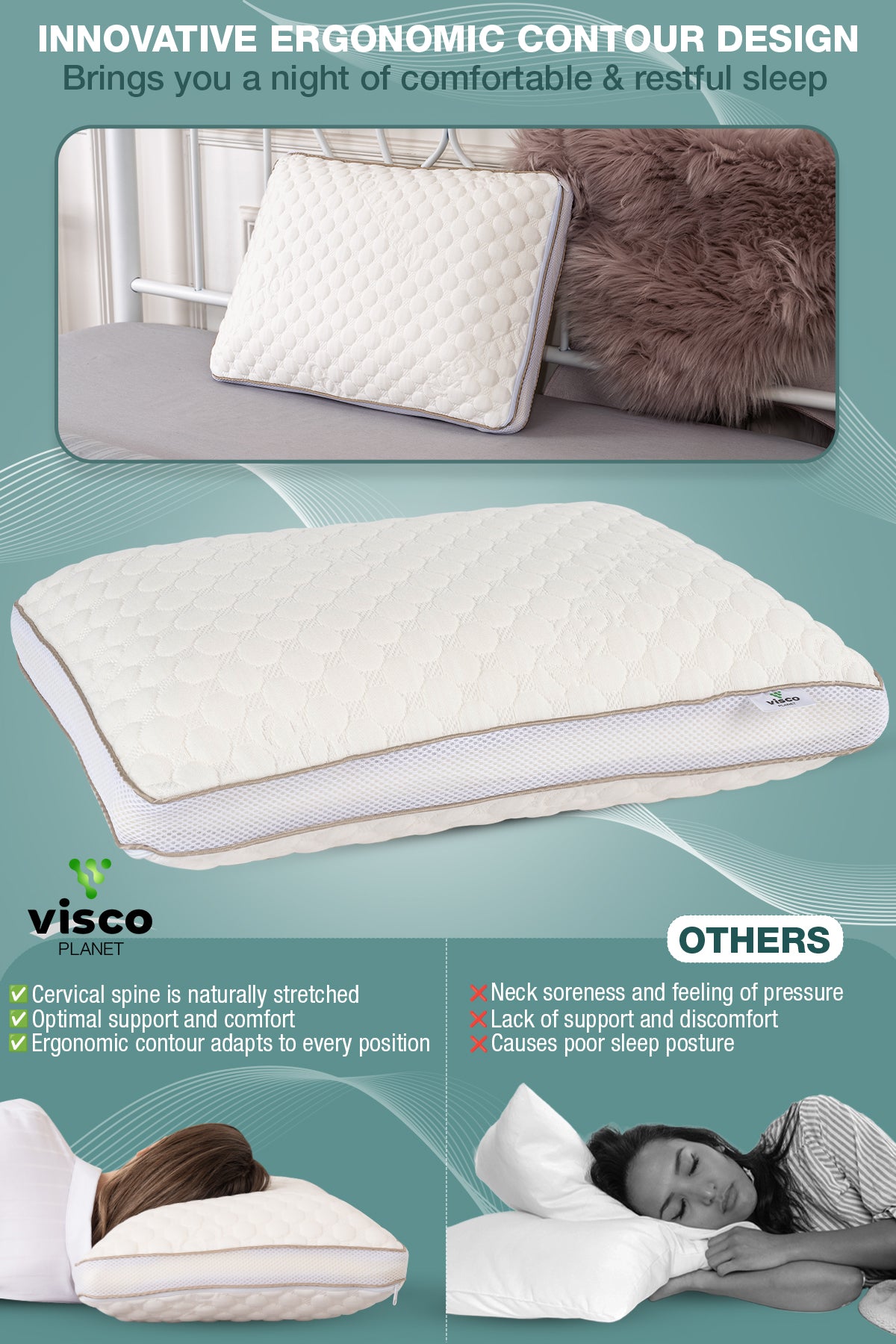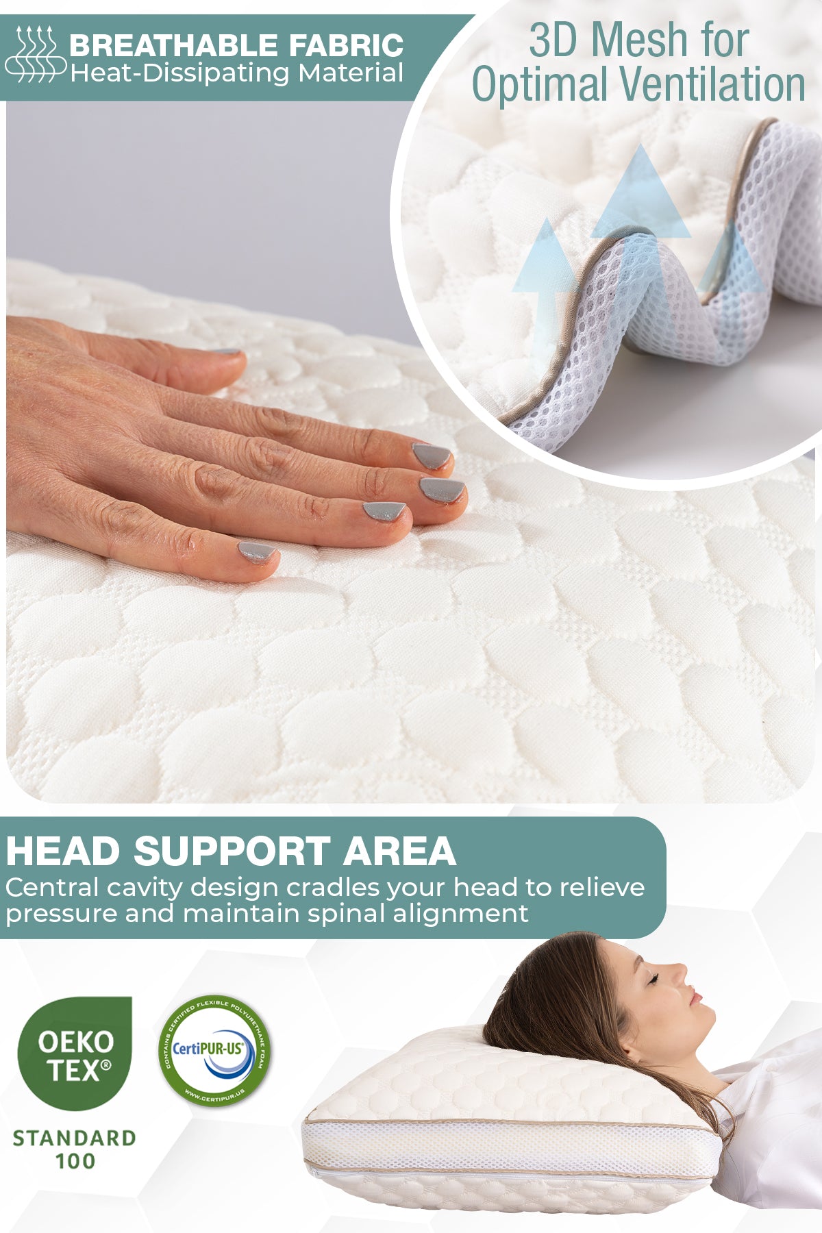 Tüm uyku pozisyonlarına uygun kullanım (yan ve sırt üstü)